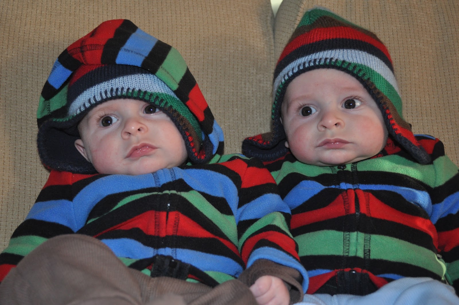 I think a lot about the next few months. One of my mommy friends mentioned the other day thinking about when her baby was going to walk and talk, and I said I think about those things all the time! Last year at this time, I was just pregnant. We found out right before Valentine's Day, and I probably hadn't told anyone yet, maybe just my mom. So I wasn't even showing, hadn't been to the dr. yet, and didn't know there were two little surprises in there instead of just one. It seems so crazy to think that. Pregnancy felt like such a long time, yet here I am a full year later with FIVE month old boys!
