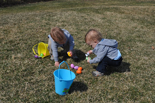 Wish I could keep better track of all their milestones, but it's hard to keep up with them! They really do seem to know a lot of words, and they repeat a lot of what we say. They don't really form any sentences yet, but I bet they'll start to put a few words together soon. They're pretty great kids! They still do well in the stroller and in carts when we go to the store and are pretty friendly and social with everyone. (They prefer me and whine the most when I'm around, but play fine once I'm gone! Sometimes Alex actually encourages me to go somewhere since they will play by themselves if I'm not there.) Naps and sleeping are both pretty much the same; they take one nap for usually close to two hours in the afternoon. They have been waking more at night, which I think happens around this age, and they go back to sleep pretty well. I think it's a little harder with it being light so early and for so long in the evening. I will add more if I think of it later but they're healthy, happy boys!
